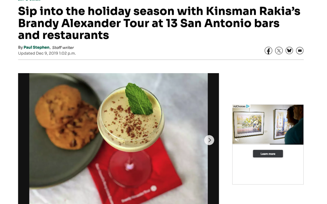 Sip into the holiday season with Kinsman Rakia’s Brandy Alexander Tour at 13 San Antonio bars and restaurants by admin | Jul 14, 2025